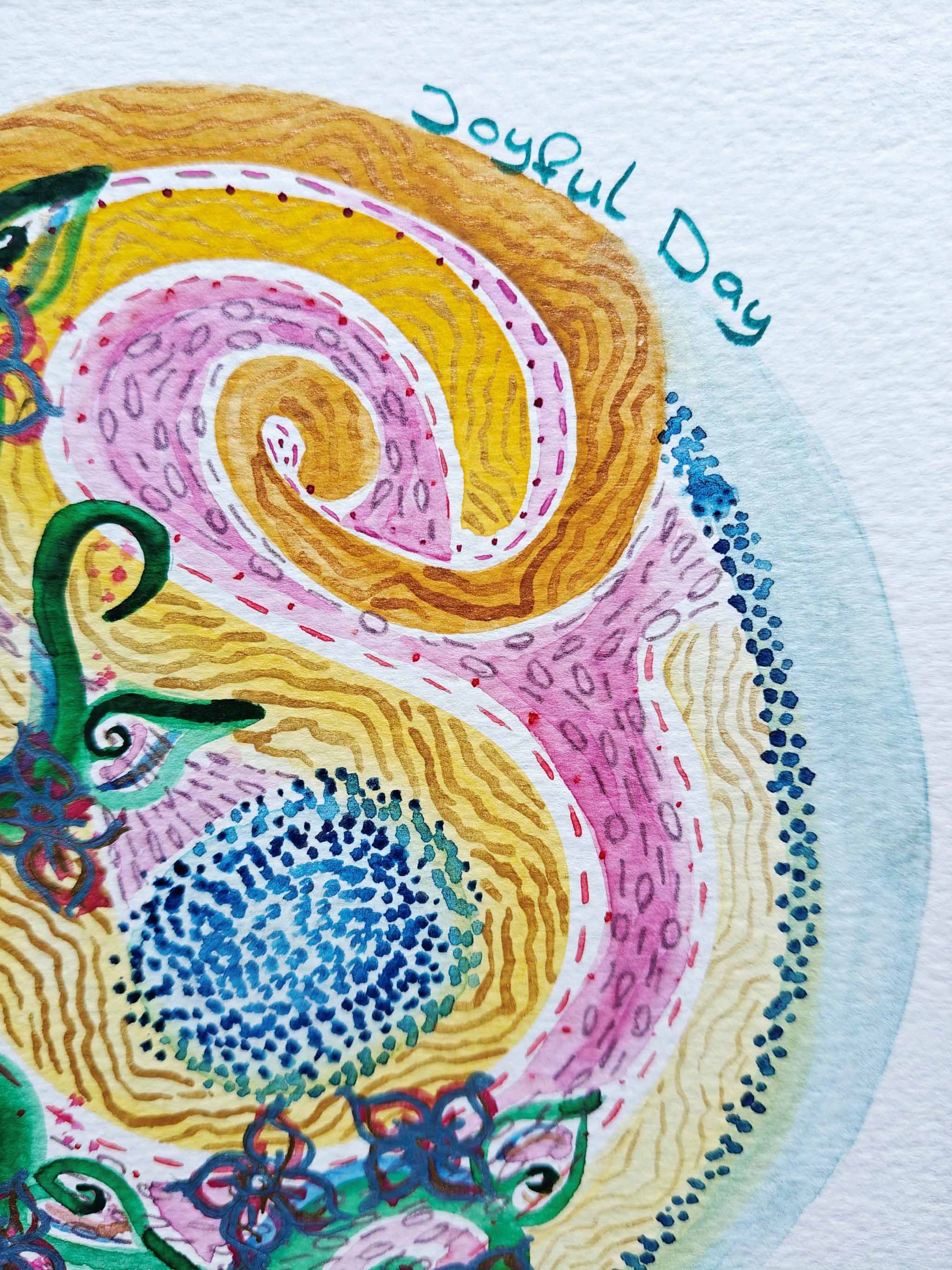 v Materials: aquarel, metallic aquarel, gel pen