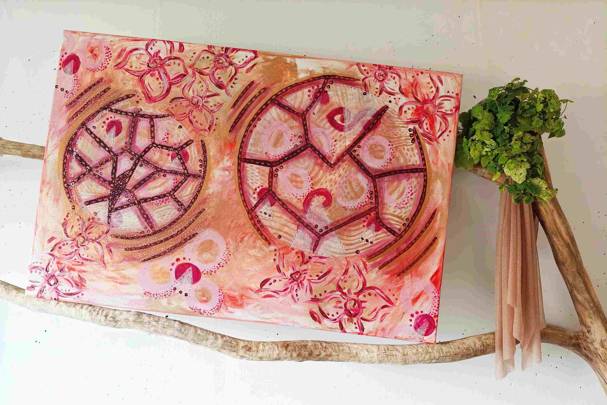 v Materials: acrylic, metallic acrylic, paint marker